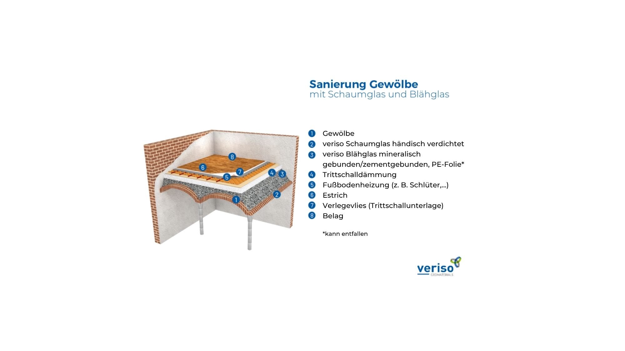 - Leicht: in mineralisch gebundener Form ist veriso Blähglas federleicht und belastet alte Konstuktionen kaum